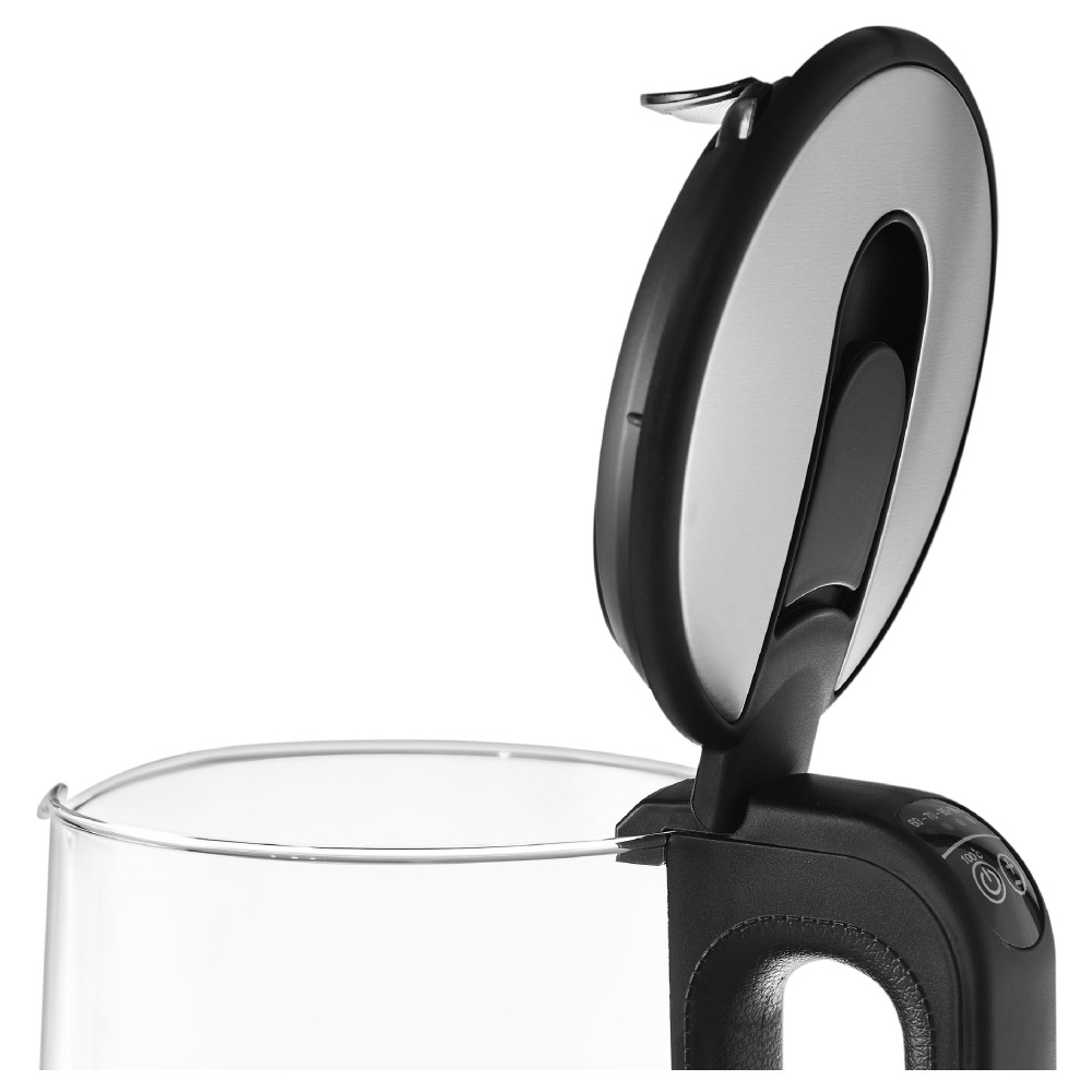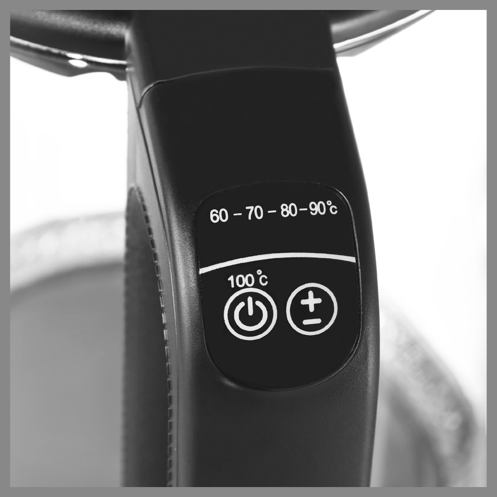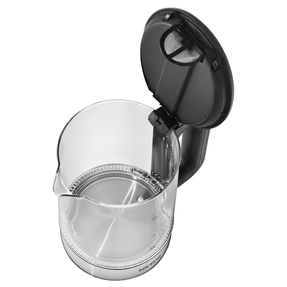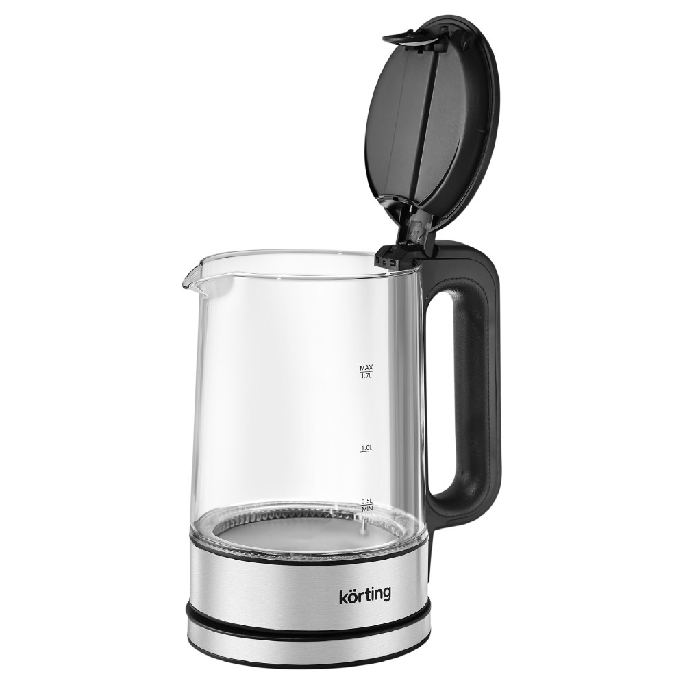 Электрический стеклянный чайник KORTING KWK 0901 G представляет собой современное устройство, объединяющее высокую технологичность и эстетический дизайн. Прочный корпус из термостойкого стекла снабжен мерной шкалой для точного контроля уровня воды. Внутренняя подсветка голубого цвета создает привлекательный визуальный эффект. Модель оснащена системой автоматического открытия крышки и функцией автоотключения, которая срабатывает в момент закипания, а также при недостаточном уровне воды, что значительно повышает безопасность использования. Контроллер воды предусматривает пять режимов нагрева: 60, 70, 80, 90 и 100 °C, с его помощью легко готовить различные виды чая. Объем чайника составляет 1.7 литра, этого достаточно для приготовления большого количества напитка. Поворотная подставка на 360° позволяет легко его использовать как правшам, так и левшам. KORTING KWK 0901 G является надежным и функциональным устройством, которое отлично впишется в любую кухонную обстановку.