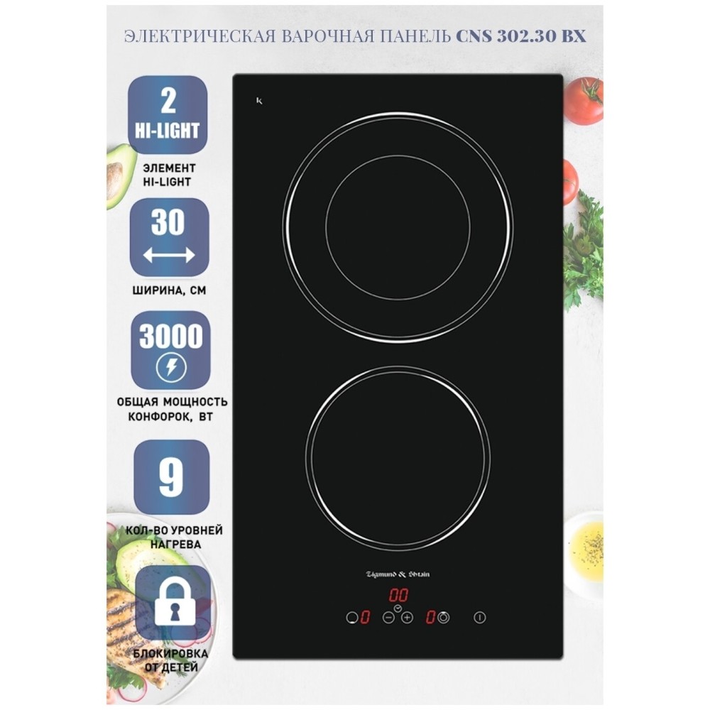 Независимая стеклокерамическая поверхность Zigmund & Shtain CNS 302.30 BX в черном цвете.
