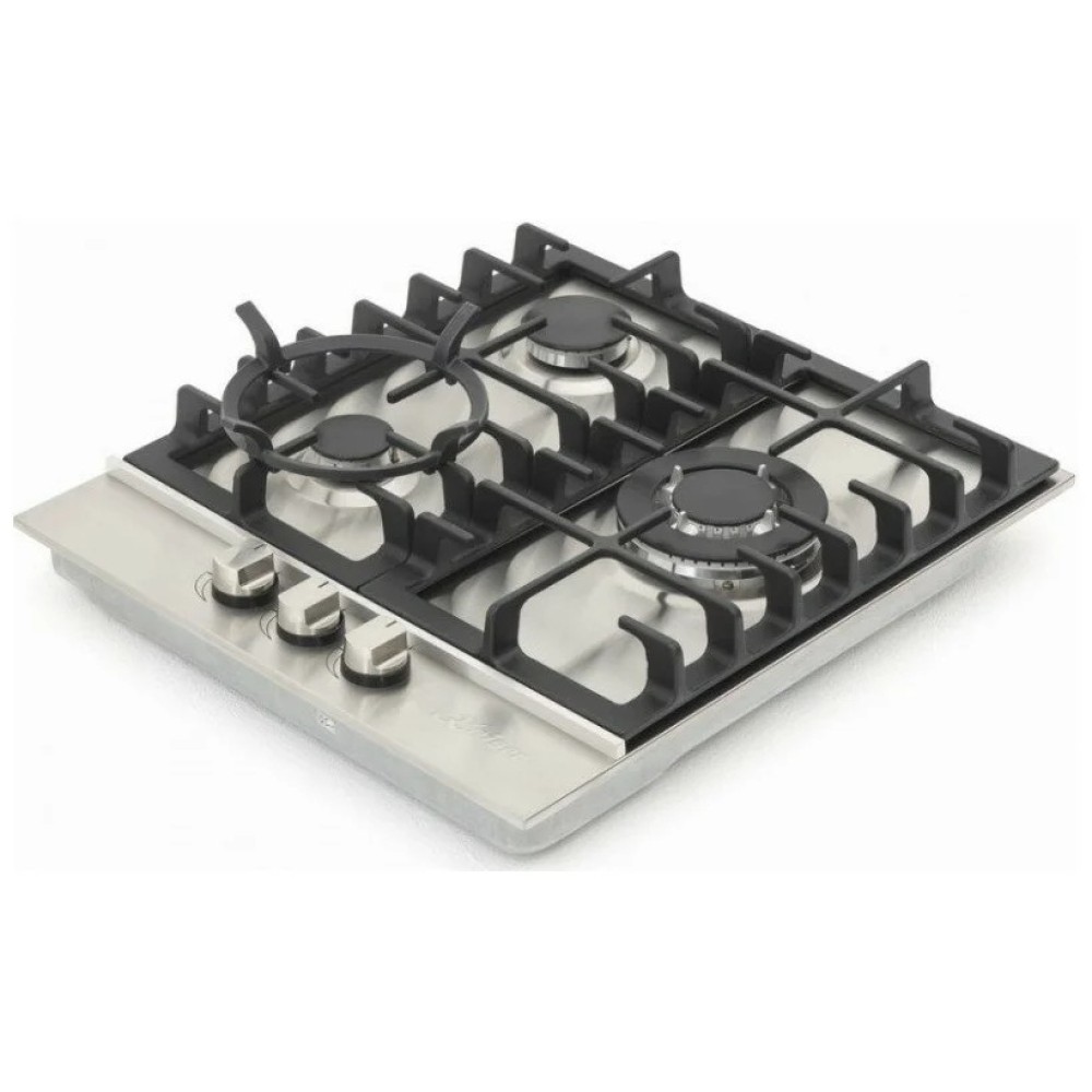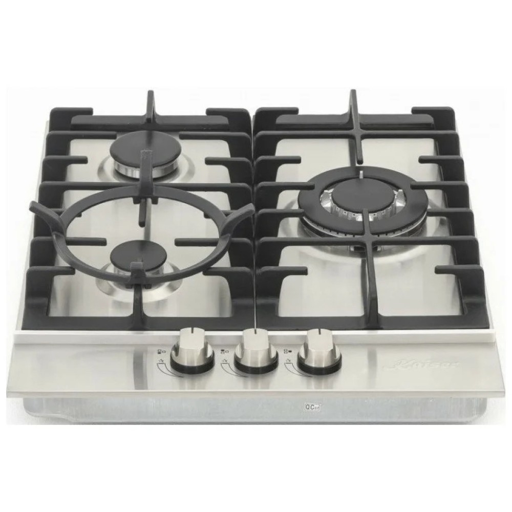 Классическая газовая варочная поверхность, принадлежащая к среднему ценовому диапазону. Как основное достоинство модели производители позиционируют уменьшенные размеры, что позволяет решить некоторые проблемы при оснащении бытовой техникой небольших по площади кухонь малогабаритных квартир в многоэтажках старой планировки — габариты изделия составляют 45x51 см. Хотя варочная поверхность Kaiser KG 4350 Turbo имеет всего три конфорки, ее производительность при разумной эксплуатации весьма велика. Целесообразно на начальной стадии приготовления пищи использовать мощную турбоконфорку с несколькими рядами пламени, обеспечивающую максимально быстрый нагрев, а потом переставлять посуду на горелку обычной конструкции и подстраивать подачу топлива поворотными ручками. Для удобства использования закрывающая газораспределительный механизм крышка изготовлена из неподдающейся коррозии нержавеющей стали, а для запала применяются высекаемые встроенными разрядниками искры. В соответствии с требованиями современных стандартов для обеспечения безопасности предусмотрена функция газ-контроль.