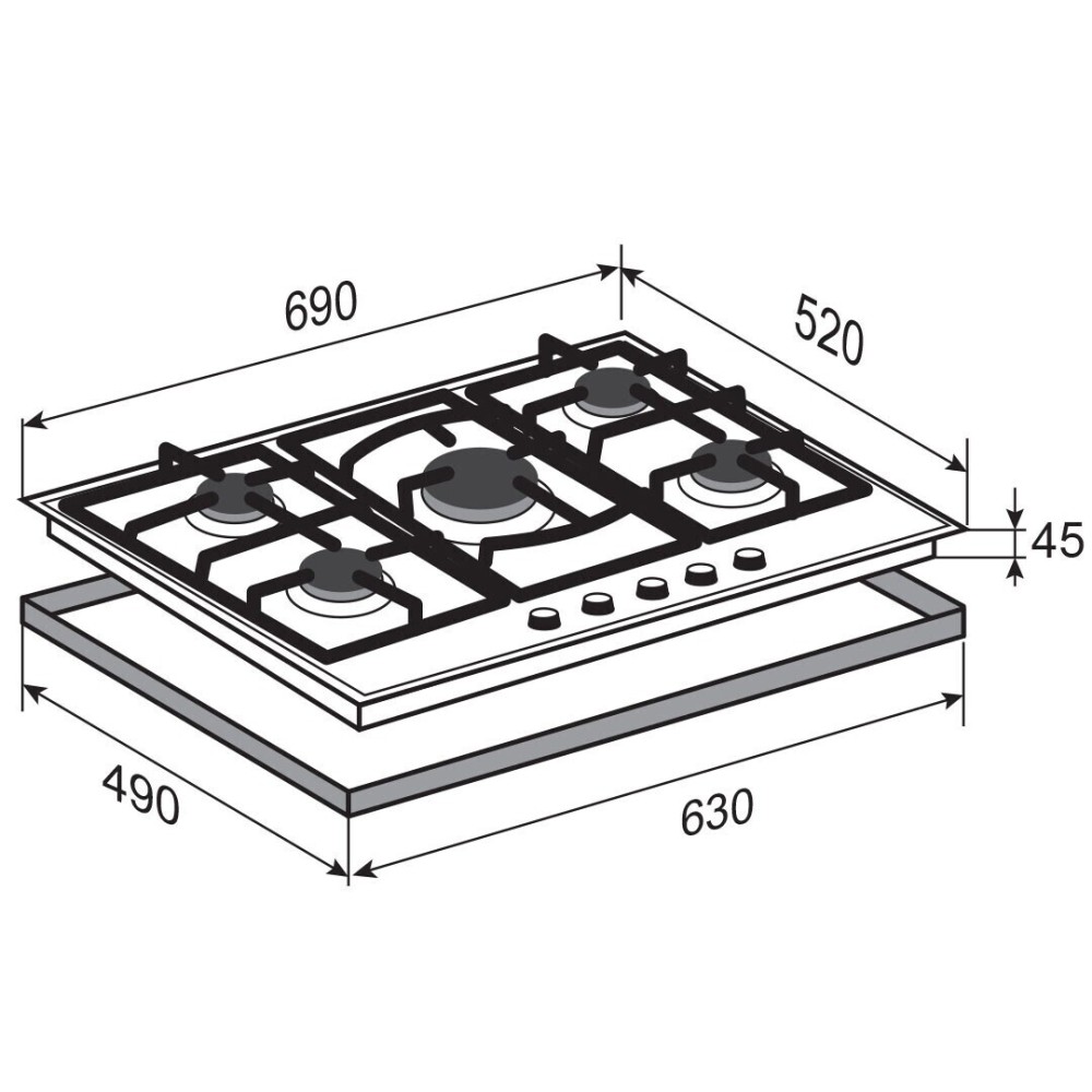 Установканезависимая | Тип панелигазовая | Общее количество конфорок5 |