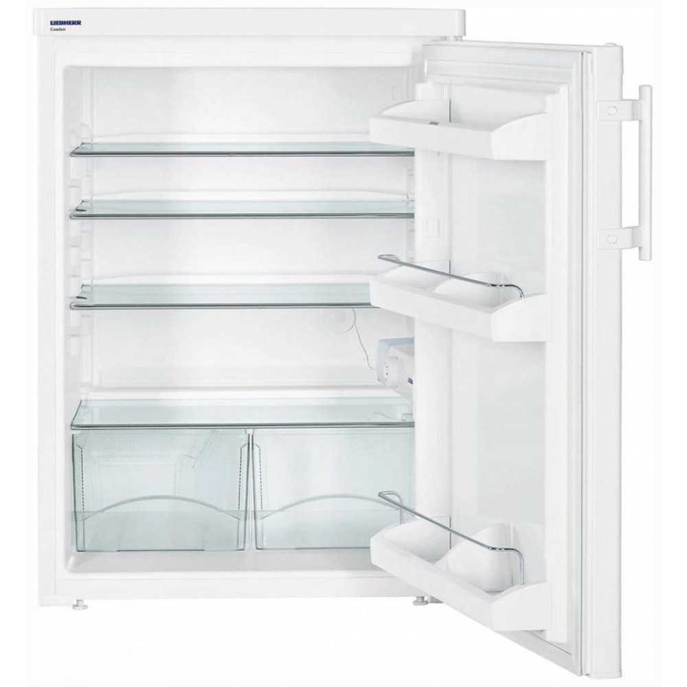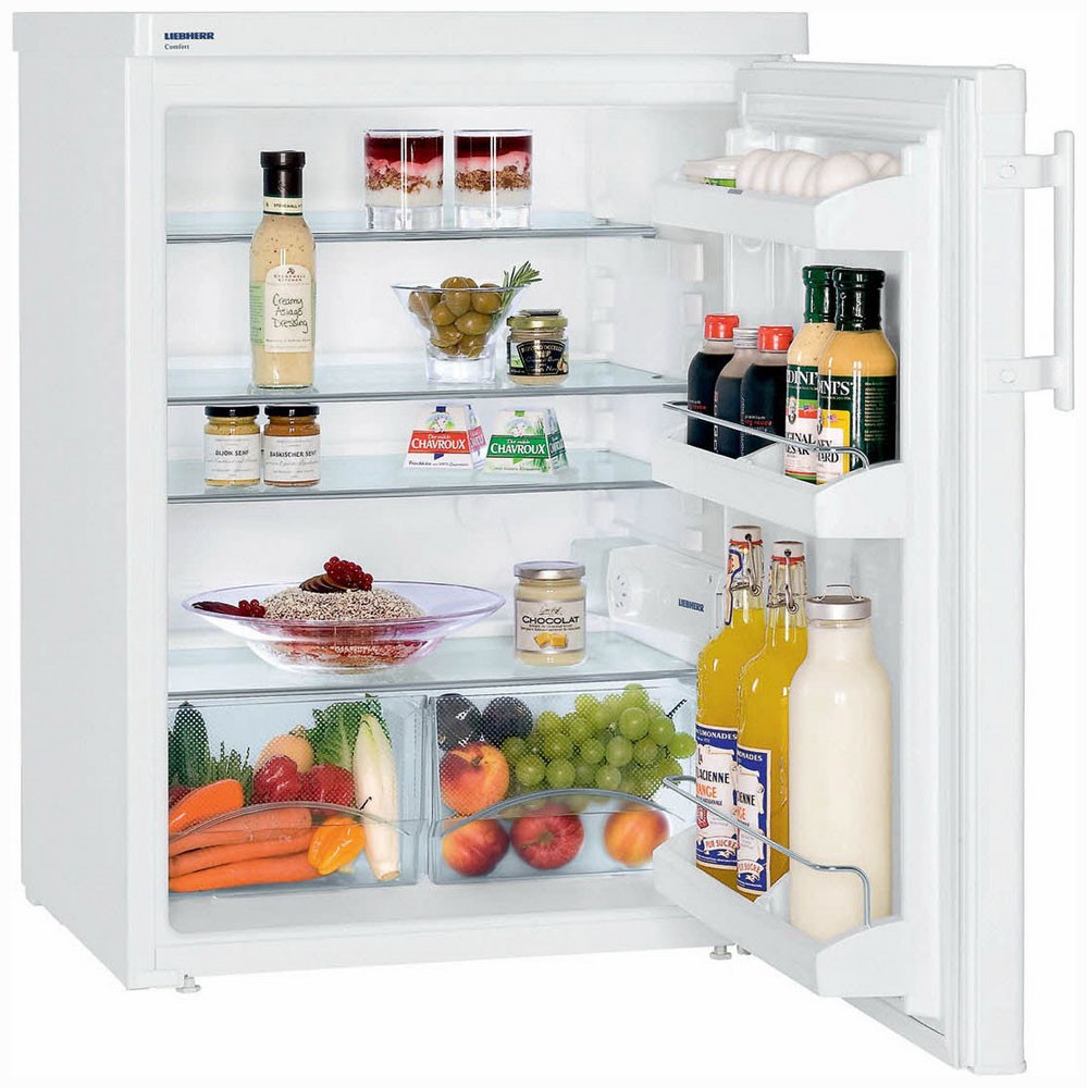 Однокамерный холодильник без морозильника Liebherr T 1810-22 — лучший выбор для офиса, отеля, студии. Корпус изготовлен из стали и окрашен в универсальный белый цвет. Высота 85 см и ширина 60 см позволяют установить его под столешницей. Полезный объем холодильной камеры составляет 167 литров. Модель можно придвигать вплотную к стене или задвигать целиком в нишу благодаря мебельной вентиляции. Класс энергетической эффективности A+ гарантирует экономичность прибора: годовое потребление энергии насчитывает 120 кВтч. Регулировка температуры в камере производится при помощи поворотного переключателя. Продукты можно разместить на полках из закаленного стекла: одна из полок может складываться. На дверце находятся отделения для бутылок и для консервов, а также два контейнера для овощей и фруктов и подставка для яиц. В камере предусмотрено яркое светодиодное освещение. Холодильная камера размораживается автоматически и не требует регулярного оттаивания. Стенки имеют с гладким покрытием также облегчают уход за прибором. Уровень шума составляет всего 39 дБ.