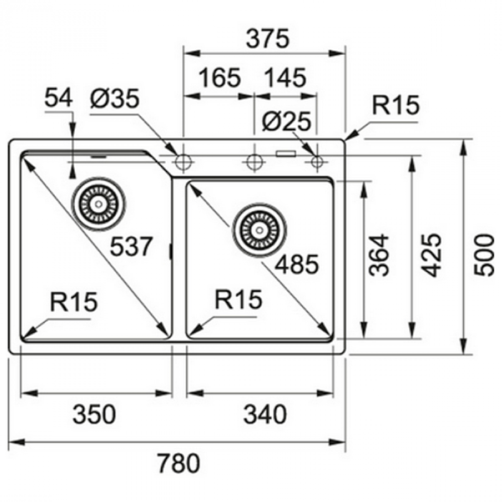 Тип: мойка кухонная Способ монтажа: врезная: на столешницу, вровень со столешницей Размер для монтажного выреза: 46.4 x 74.4 см Ширина шкафа: 80 см Форма: прямоугольная Длина мойки: 78 см Ширина мойки: 50 см Глубина чаши: 22 см Размер чаши: 42.5 х 35 х 22 см/36.4 x 34 х 20 см Количество чаш: 1,5 Наличие крыла: нет
