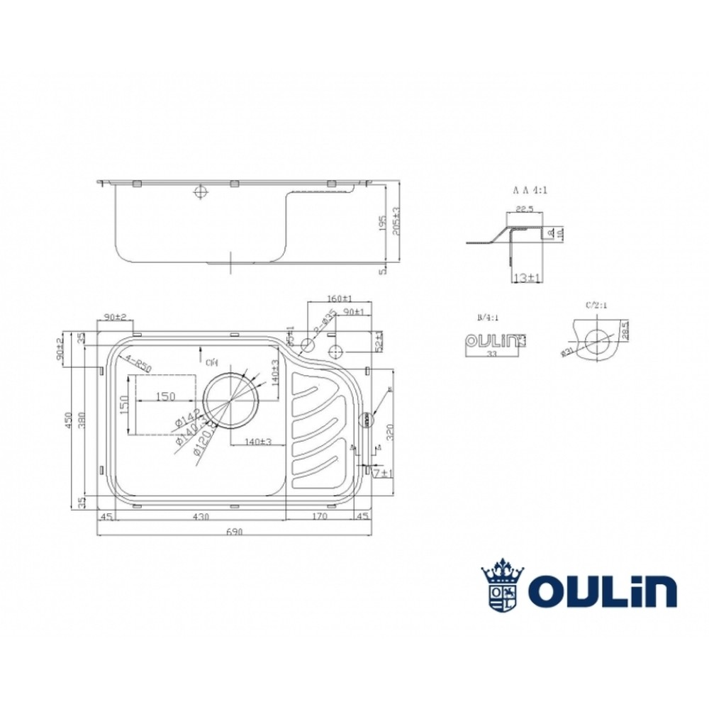 Кухонная мойка Oulin OL-327L