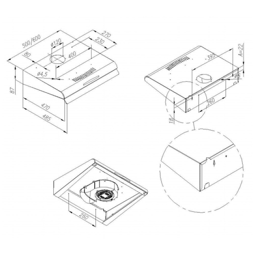 Корпус сделан из нержавеющей стали с термостойким покрытием из эмали, которое позволяет сохранить внешний вид вытяжки даже при активной эксплуатации. За съемной декоративной панелью скрыт алюминиевый жироулавливающий фильтр, который имеет продолжительный срок службы и эффективно очищает воздух.