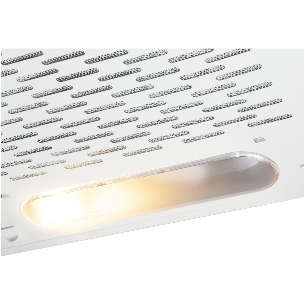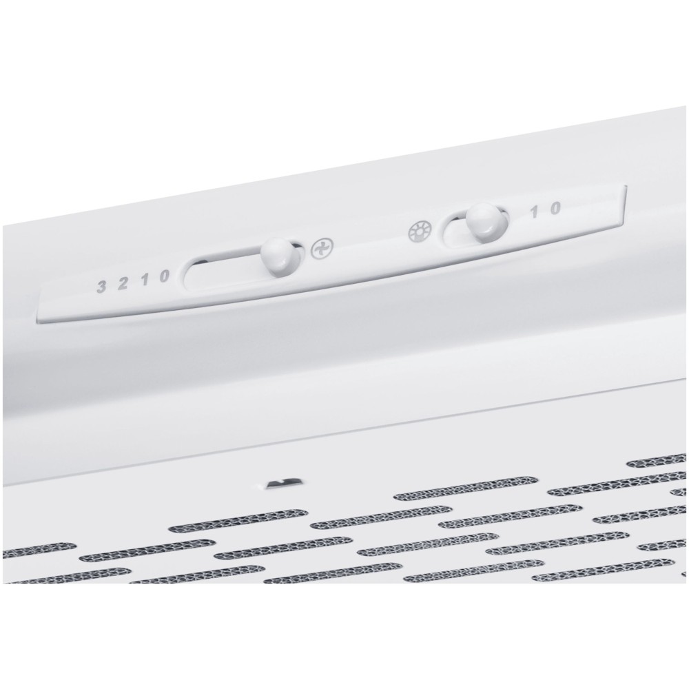 Классическая подвесная кухонная вытяжка шириной 60 см выполненная в белом цвете подойдет для небольшой кухни (до 12 кв. м). Может использоваться для отвода воздуха из помещения при подключении к системе домовой вентиляции или очищать воздух с помощью сменного угольного фильтра.