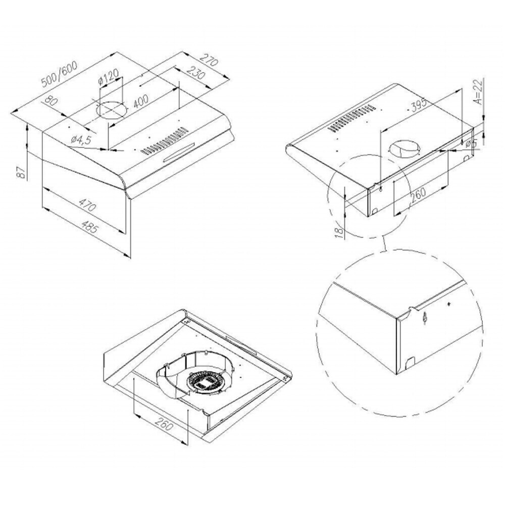 Стандартная вытяжка из высококлассной стали, встраивается над поверхностью плиты под шкафом по типу козырькового монтажа. Компактная, она идеально подойдет для стандартных кухонь не больших размеров (до 12 кв.м). Дизайн великолепно впишется в любой кухонный интерьер и благодаря высокому качеству материалов прослужит десятилетия.