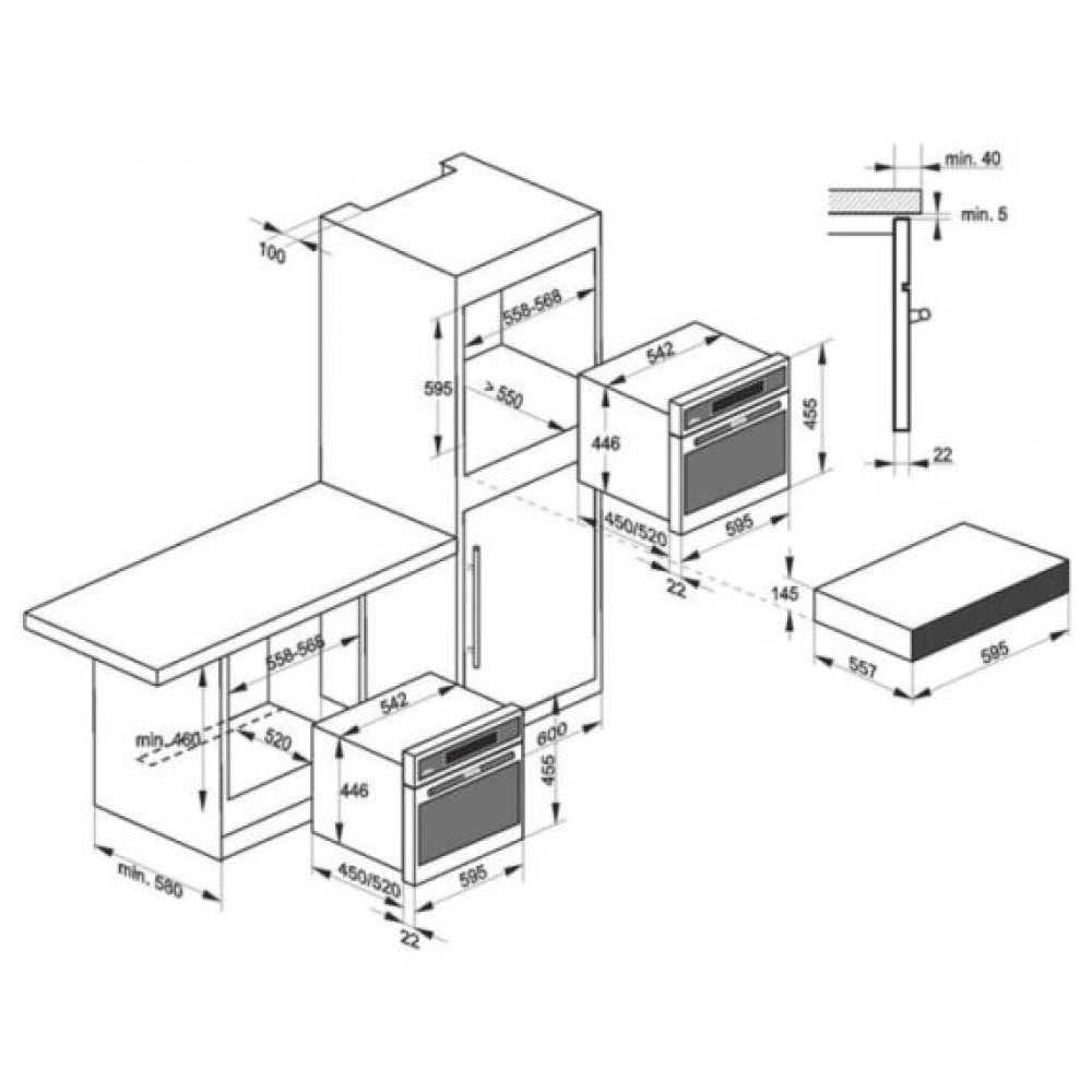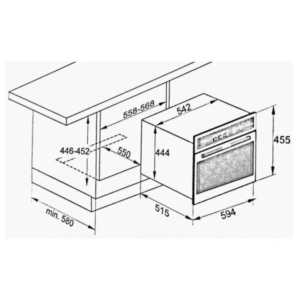 Минимальные размеры для встраивания (ШxГxВ), мм 556/580/446