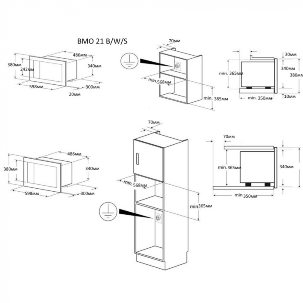 Технические характеристики Встраиваемая микроволновая печь Zigmund & Shtain BMO 21 W