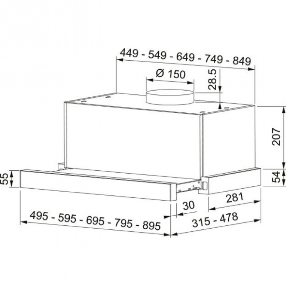 Режимы работы: отвод/рециркуляция воздуха Производительность: 750 м³/ч Освещение: LED Мощность лампы: 2 Вт Уровень шума: 55 дБ Мощность: 230 Вт Количество скоростей: 3 Управление: сенсорное Система периметрального всасывания: да Индикация выбранной мощности: да Индикация загрязнённости фильтра: да Фильтр: алюминиевыйГабариты (ВхШхГ): 290х595х315 мм Габариты ниши (ВхШхГ): 290х549х281 мм Вес: 7,5 кг