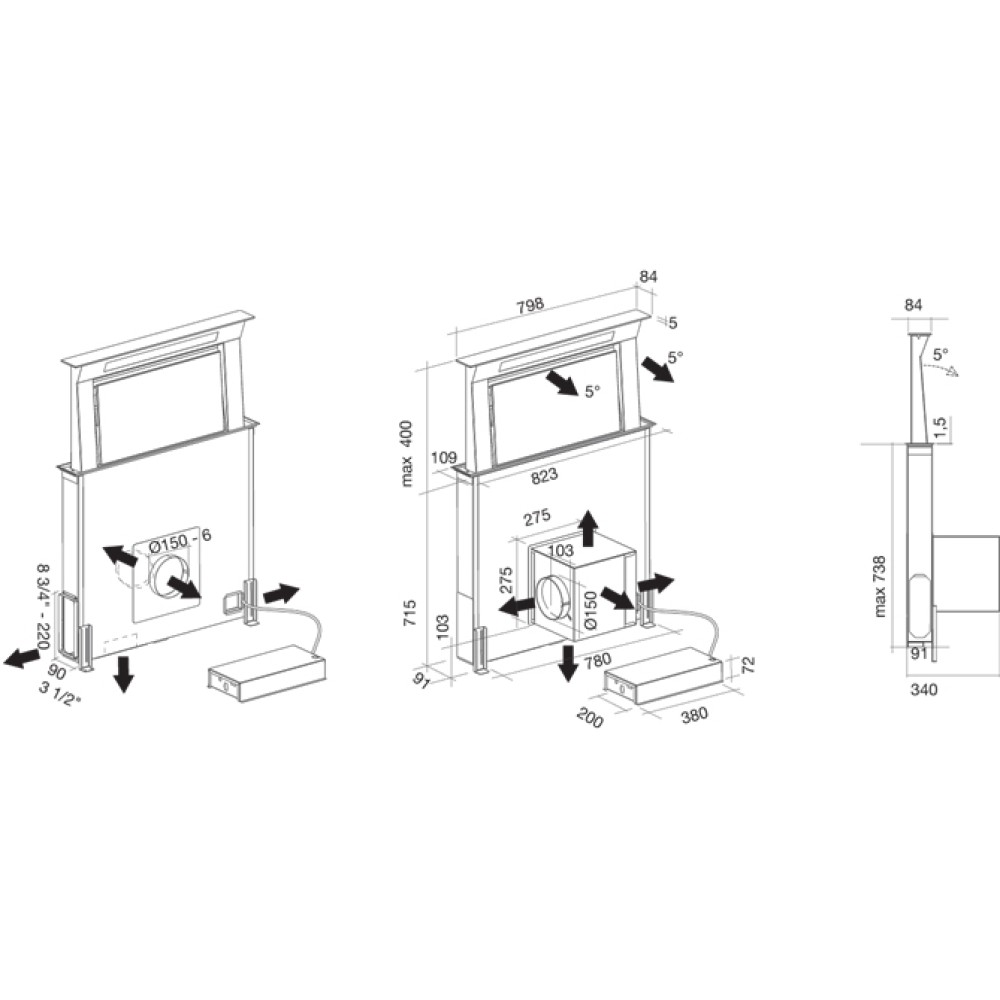 | Габариты ниши для встраивания (ВхШхГ), см78х9.1 | Диаметр воздуховода (мм)150 | Максимальная высота (см)40 |