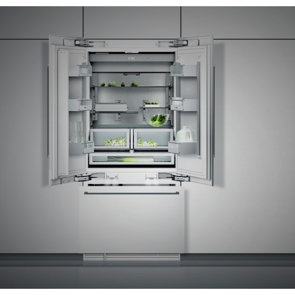 Встраиваемый холодильник Gaggenau RY 492-301 — модель из серии Vario 400, которая объединяет профессиональное качество хранения и возможность установки дома. Холодильная камера с распашными французскими дверями, нулевая зона свежести и морозильный ящик в нижней части создают оптимальные условия для охлаждения и замораживания. Корпус изготовлен из стали, антибактериальное покрытие защищает от отпечатков пальцев, плесени и грибка. На дверцу жестко навешивается декоративный фасад по системе door on door. Общий полезный объем составляет 526 л, емкость морозильной камеры — 146 л, зоны свежести — 25 л.