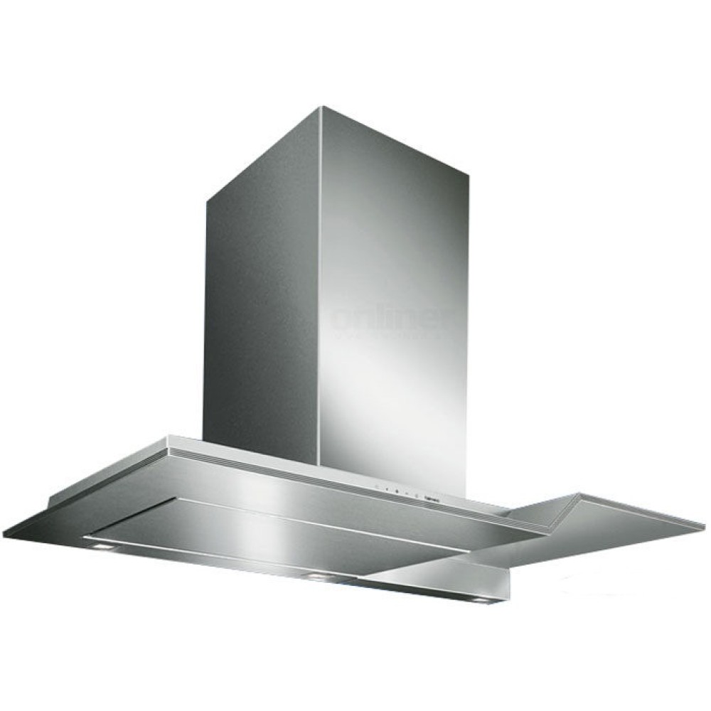 Вытяжки т-образной формы пользуются большим спросом, поэтому широко представлены в ассортименте разных брендов. Их особенность — плоское прямоугольное основание, в котором установлены фильтры, а на передней панели чаще всего расположено управление. Из-за того, что воздуховод находится по центру перпендикулярно основанию, вытяжка и напоминает визуально букву «Т».