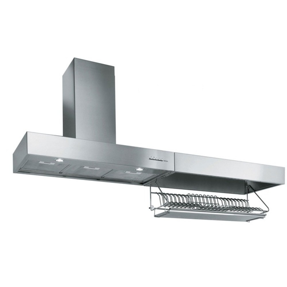 Вытяжки т-образной формы пользуются большим спросом, поэтому широко представлены в ассортименте разных брендов. Их особенность — плоское прямоугольное основание, в котором установлены фильтры, а на передней панели чаще всего расположено управление. Из-за того, что воздуховод находится по центру перпендикулярно основанию, вытяжка и напоминает визуально букву «Т».