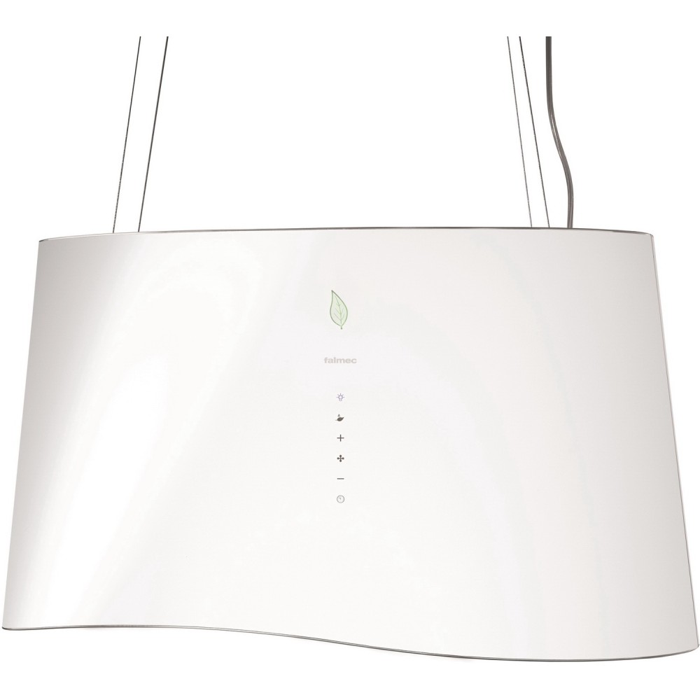 Данная вытяжка выглядит изящной и невесомой за счет свободного пространства между креплением и основным корпусом. Обратите внимание на цветовые сочетания модели Falmec Mare isola 66 (450) (с системой E.ion) ECP white, чтобы органично вписать ее в свою квартиру. Оттенок корпуса: белое стекло. Благодаря лампочкам, которые расположены на нем, можно освещать плиту и столешницу рядом, чтобы готовить было еще проще и приятнее.