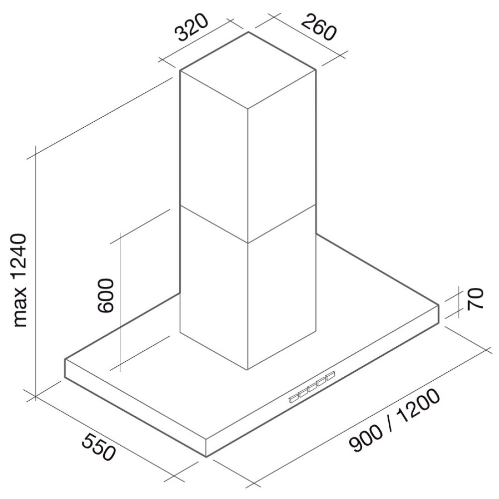 Вытяжки т-образной формы пользуются большим спросом, поэтому широко представлены в ассортименте разных брендов. Их особенность — плоское прямоугольное основание, в котором установлены фильтры, а на передней панели чаще всего расположено управление. Из-за того, что воздуховод находится по центру перпендикулярно основанию, вытяжка и напоминает визуально букву «Т».