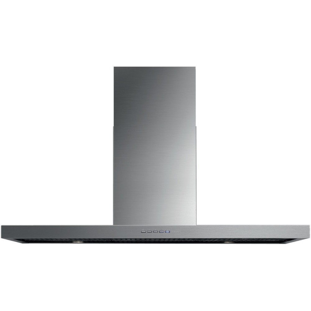 Вытяжки т-образной формы пользуются большим спросом, поэтому широко представлены в ассортименте разных брендов. Их особенность — плоское прямоугольное основание, в котором установлены фильтры, а на передней панели чаще всего расположено управление. Из-за того, что воздуховод находится по центру перпендикулярно основанию, вытяжка и напоминает визуально букву «Т».