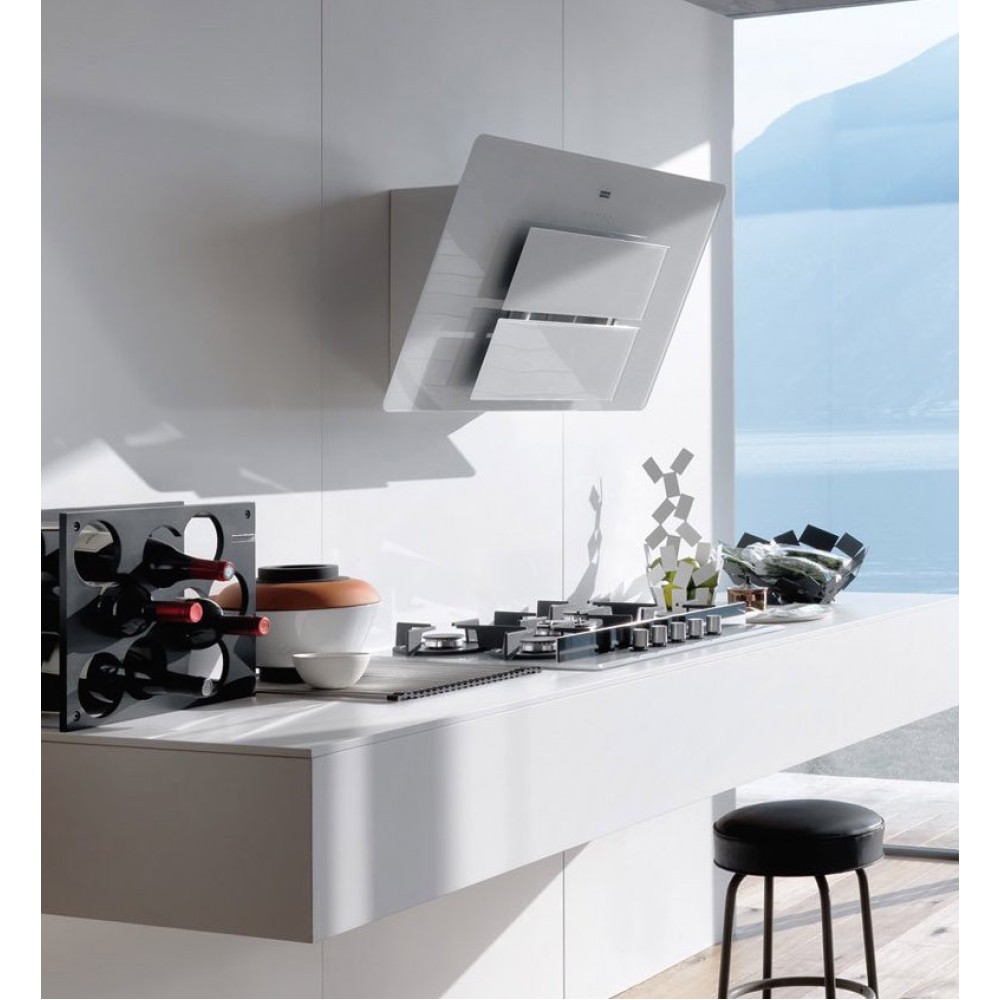 Данная вытяжка крепится на стену и имеет наклонную фронтальную панель, что придает изюминку дизайну и позволяет сохранить свободное рабочее пространство внизу. Обратите внимание на цветовые сочетания модели Franke FMA 605 WH, чтобы органично вписать ее в свою квартиру. Оттенок корпуса: белое стекло. Благодаря лампочкам, которые расположены на нем, можно освещать плиту и столешницу рядом, чтобы готовить было еще проще и приятнее.