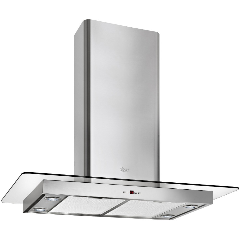 Вытяжки т-образной формы пользуются большим спросом, поэтому широко представлены в ассортименте разных брендов. Их особенность — плоское прямоугольное основание, в котором установлены фильтры, а на передней панели чаще всего расположено управление. Из-за того, что воздуховод находится по центру перпендикулярно основанию, вытяжка и напоминает визуально букву «Т».